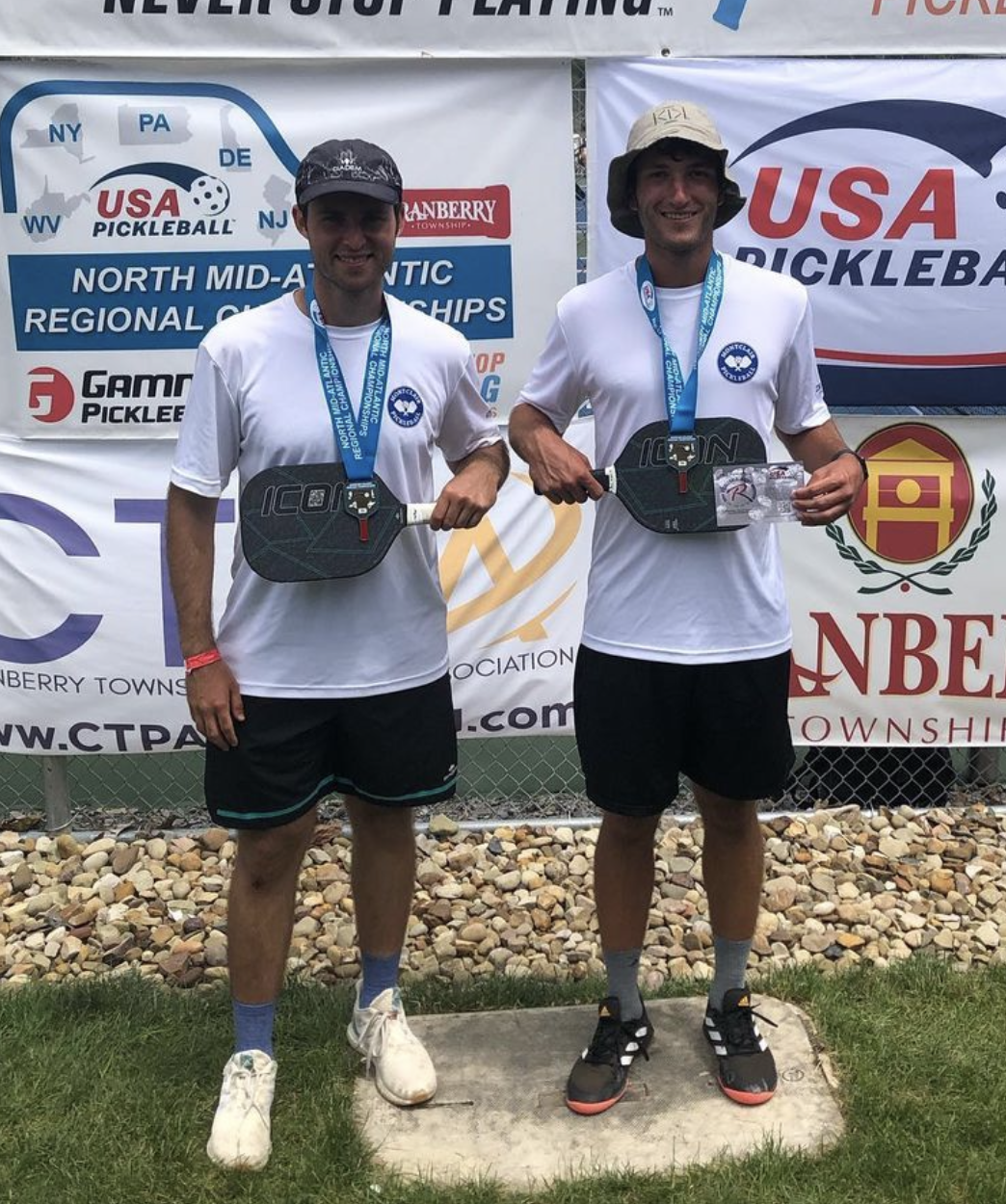 When it came time for college, Matt went north to the College of the Holy Cross and Aaron went south to the University of Maryland. Of course, the guys both continued to play tennis. Matt played for the Holy Cross team, where he served as captain in his junior and senior years, and Aaron played on the UM club team. But it was at UM that Aaron’s passion for pickling was kindled. He met a kid named Ben Johns at his first night of club tennis freshman year, became close friends through tennis and ping-pong, and initially rejected the idea of trying pickleball when Ben told him he had started playing. Ben went on to become the number one player in the world, and Aaron eventually did give the sport a try. The rest, as they say, is history.