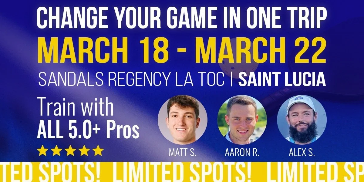 Their very first trip will be from March 18 - 22, 2026, at the beautiful all-inclusive Sandals Regency La Toc Resort in Saint Lucia. Players will get 3 full days of intense training, guided matchplay, private lessons for everyone, fitness and yoga classes, pro player seminars, mindset seminars, film review, personal goal setting, and SO much more. Plus, the resort has beautiful pools, beaches, and awesome excursions like snorkeling, cave tours, and hiking. If there was anything else we didn’t to add in here, we probably already have it planned but forgot to type it. This is a ONE OF A KIND pickleball trip. Find the full details here.